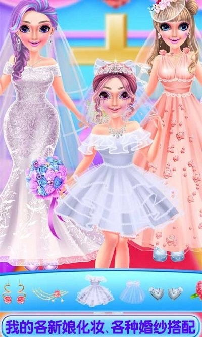 在游戏中,你可以看到各式各样的婚纱,从简约的白色婚纱到华丽的金色婚纱,从古典的蕾丝婚纱到现代的简约婚纱,应有尽有。每一款婚纱都充满了设计感,让人目不暇接。而且,游戏中还有丰富的饰品可供选择,如头纱、耳环、项链、手链等,让玩家可以尽情发挥自己的创意,打造独一无二的芭比新娘造型。