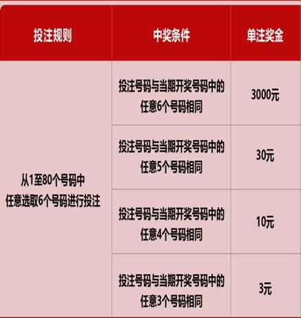 3. 中奖规则:快乐8游戏的中奖规则非常简单,只要玩家投注的号码与开奖号码一致,即可获得相应的奖金。奖金金额根据投注方式和中奖号码的数量而定。