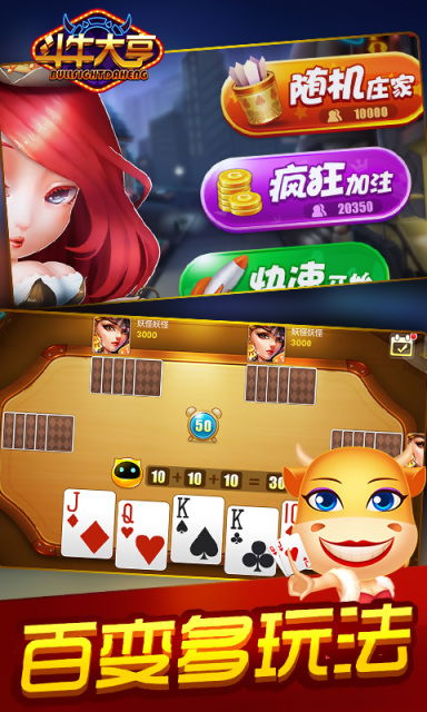 1. 基本玩法:牛牛游戏使用一副54张扑克牌,包括2-10的数字牌和J、Q、K、A四种花色牌。游戏开始时,每位玩家发5张牌,通过组合牌型,争取达到“牛牛”的牌型。所谓“牛牛”,就是由三张相同的牌和一对相同的牌组成的牌型。
