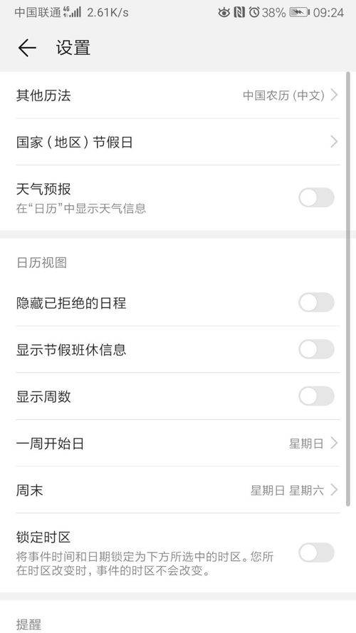 在设置里,你可以看到很多选项,比如“日历视图”、“事件提醒”、“日历账户”等。让我们一一探索: